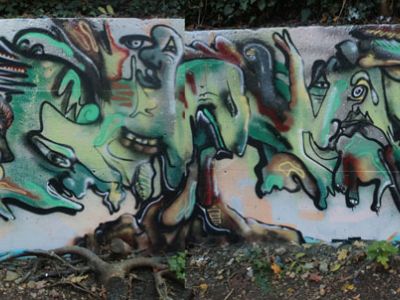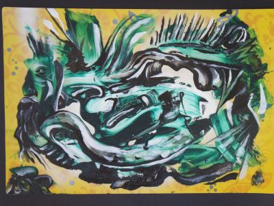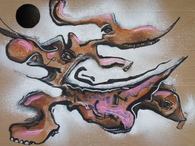 Die Entstehung eines Freystil-Werkes gestaltet sich durch diverse, zum Teil auf Zufall basierende Techniken, Farbe, Form und Material zu nutzen.